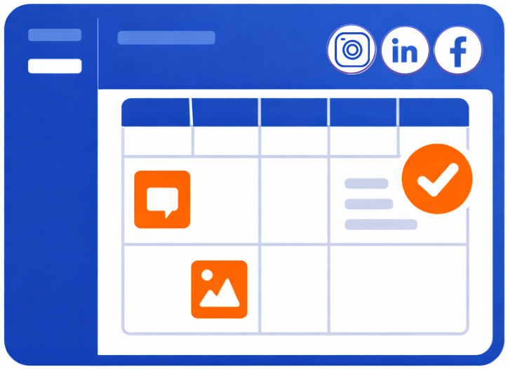 Posts, Reels, stories, temps forts, offres et contenus récurrents.